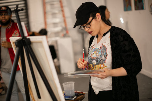 Throughout the event we had live painters, painting for the people in attendance to witness. Amara Skye, Pamela Cooper, Ashlie Juarbe and Vanessa Melo were apart of the live painting segment. They got to show off their skills to other artists while also appreciating the art. After they finished creating their master pieces, we had a live auction to sell their art. Each piece put for sell in the live auction was sold.
