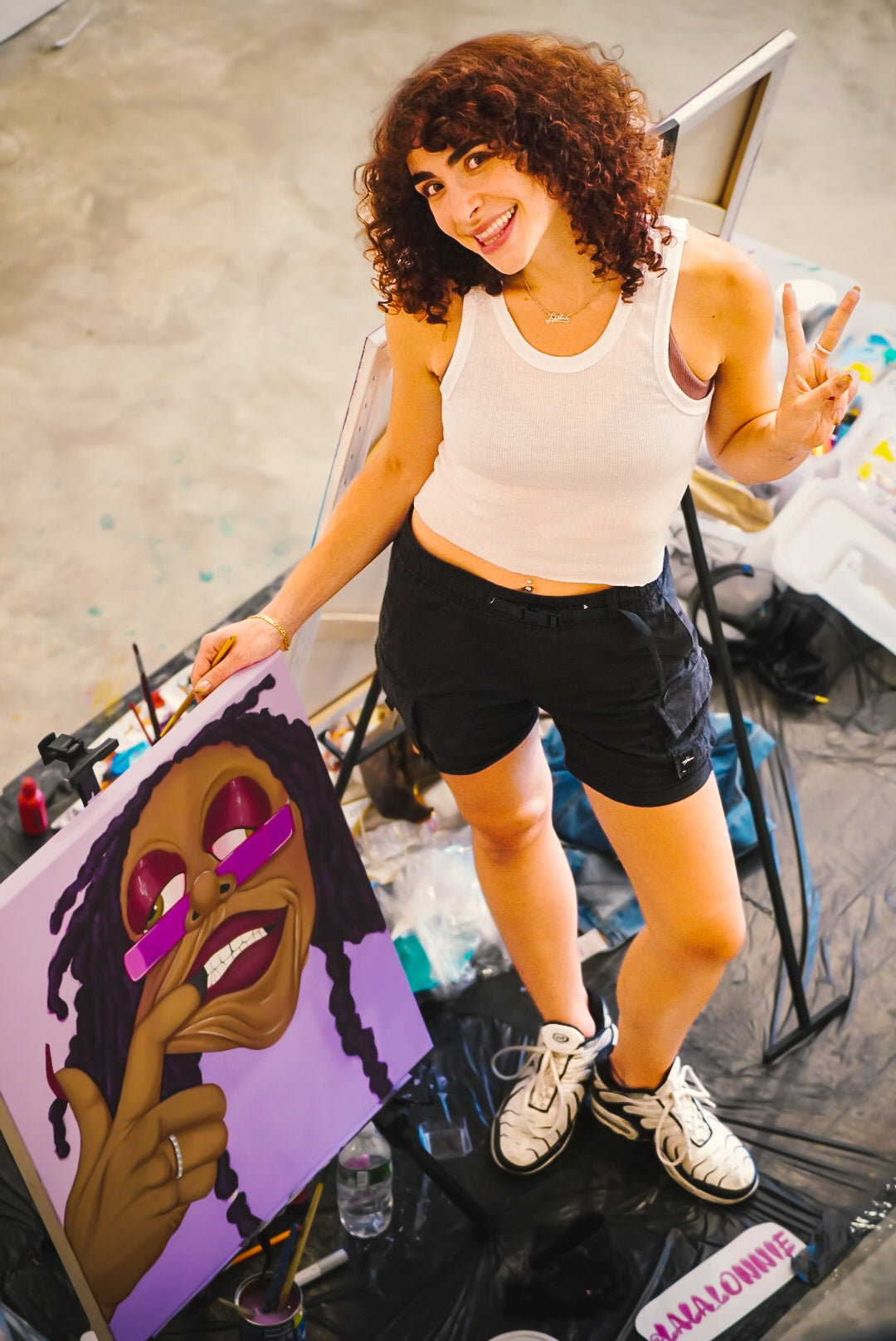 Lala specializes in surreal, cartoon-like figures and psychedelic dreamscapes. Exploring themes like mental illness, trauma, and gender identity, Lala beckons viewers into their colorful, sometimes grotesque, emotional world. By being vulnerable through their art, Lala hopes to inspire others to get in touch with their authentic selves and find their own unique voice.