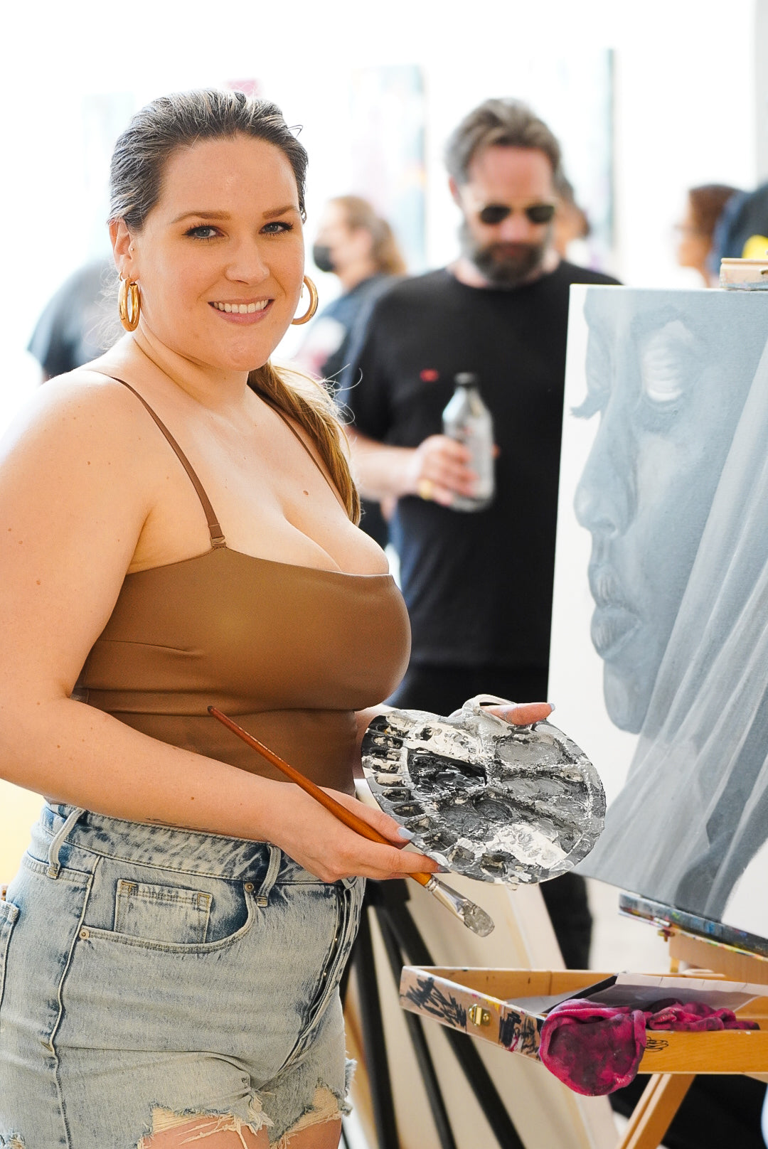 Michelle’s art style has become a full circle effect; from drawing all her life in graphite to finally trying painting, first in color and now in greyscale, perpetuating her graphite roots in a new medium of acrylic paint. She loves to paint individuals up close and personal. As a portrait artist, Michelle chooses her subjects based on perspective, composition and raw emotion. There’s so much storytelling in the eyes of each human being and it’s her goal to capture that essence, that story, that beautiful, unique and special life through her work.